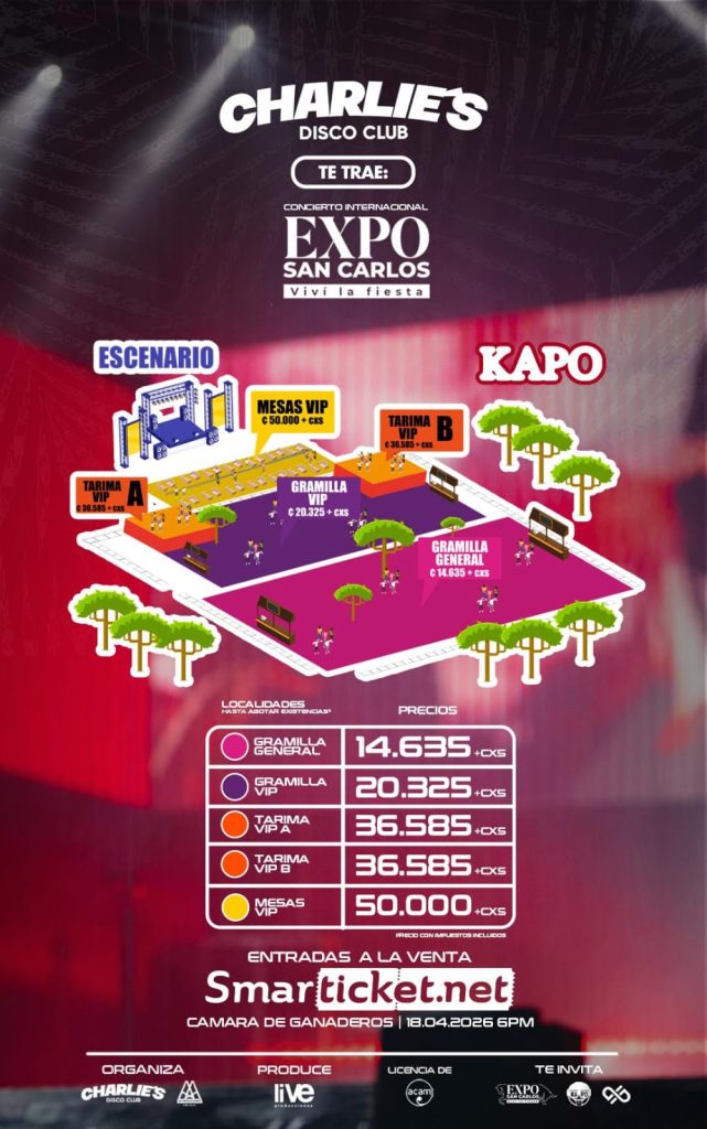 La organización del evento está a cargo de Charly’s Disco Club y AA Producciones, mientras que la producción general del espectáculo estará a cargo de LIVE Producciones, quienes unirán esfuerzos para presentar un show de alto nivel para el público sancarleño y visitantes de todo el país.